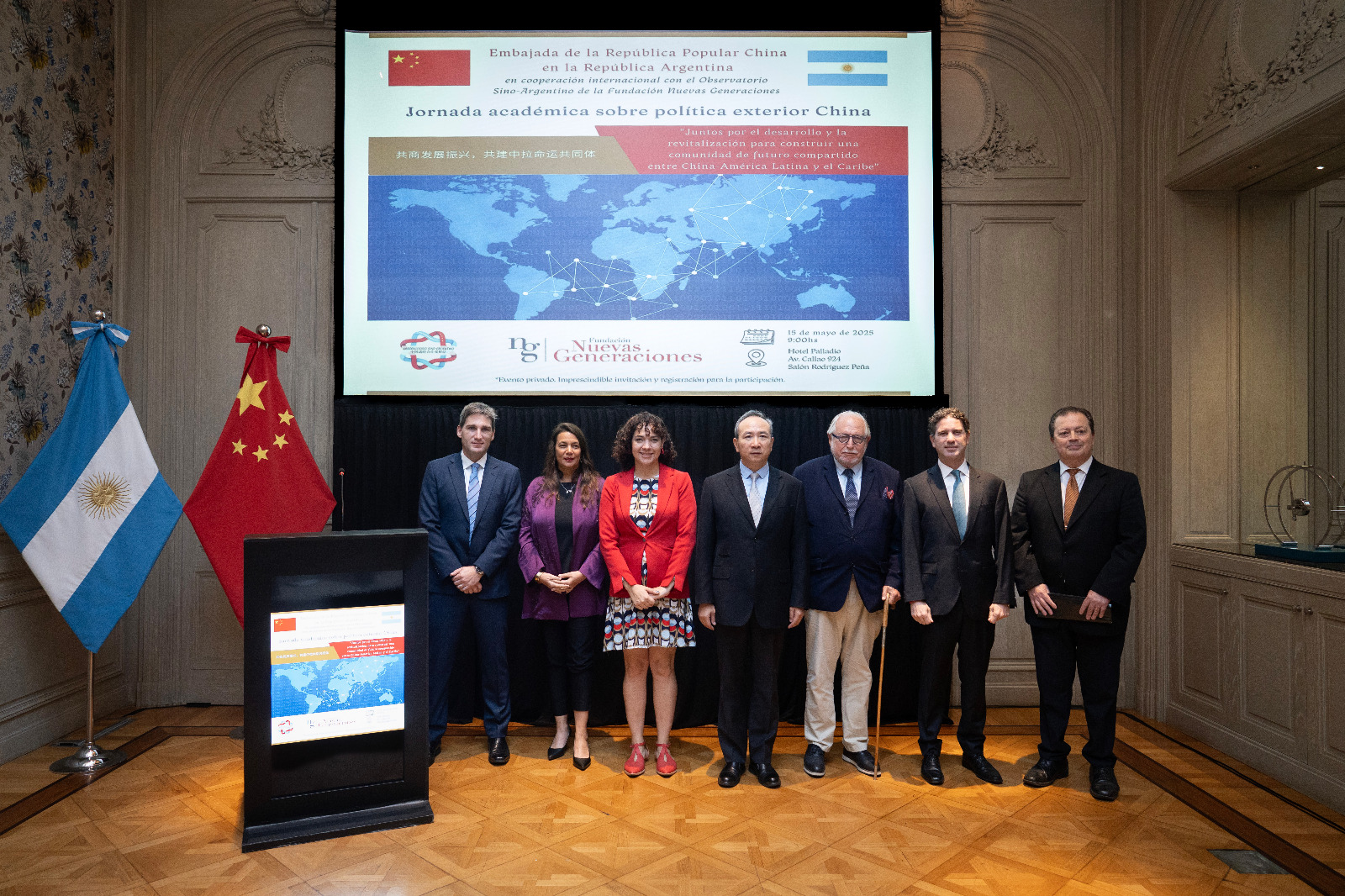 En el día de hoy, 15 de mayo del 2025, realizamos exitosamente un seminario conjunto con la Embajada de la República Popular China en Argentina sobre cooperación entre China y América Latina. El mismo se realizó en el hotel Palladio, ubicado en el centro de la Ciudad de Buenos Aires.
